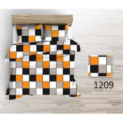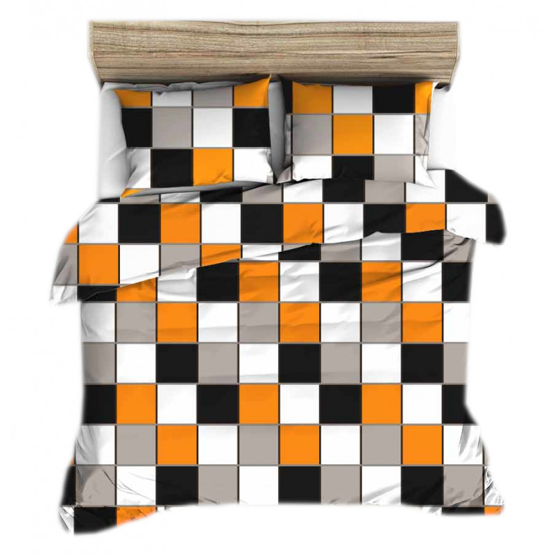 Pościel bawełna 160x200- 3cz biały szary czarny pomarańczowy krata 1209