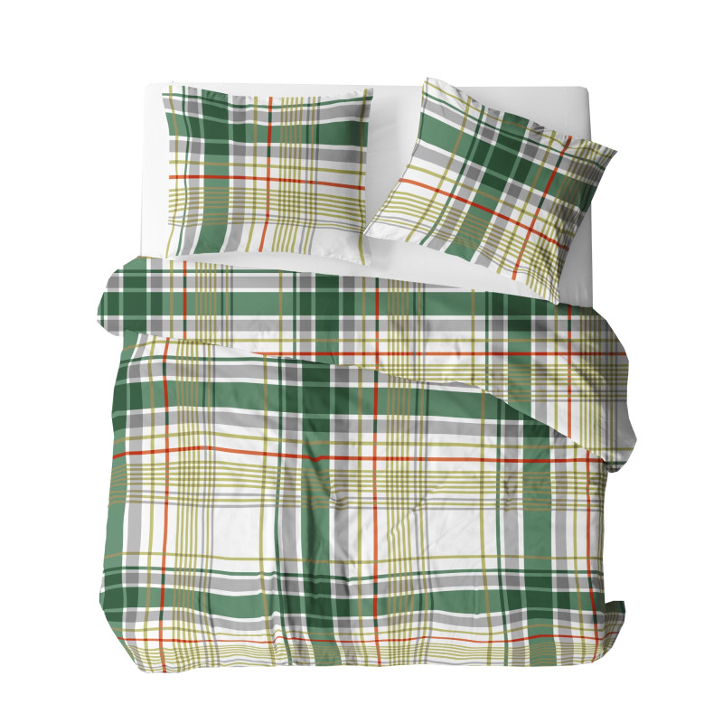 Pościel bawełna 200x220- 3cz zielony szary krata 1942